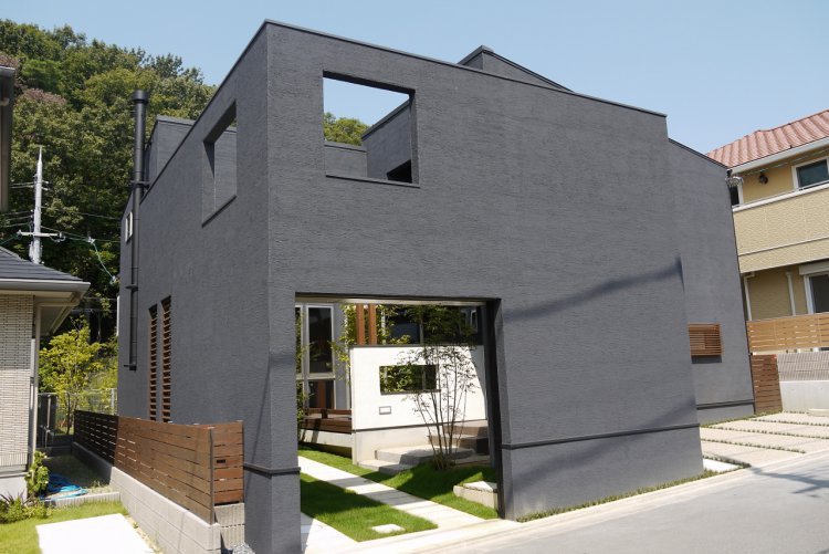 依頼主の要望で、外部からの視線を気にせず暮られるために、駐車場兼中庭を設け、依頼主だけが楽しめる景色をつくった。