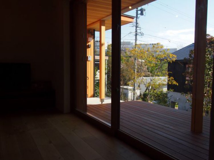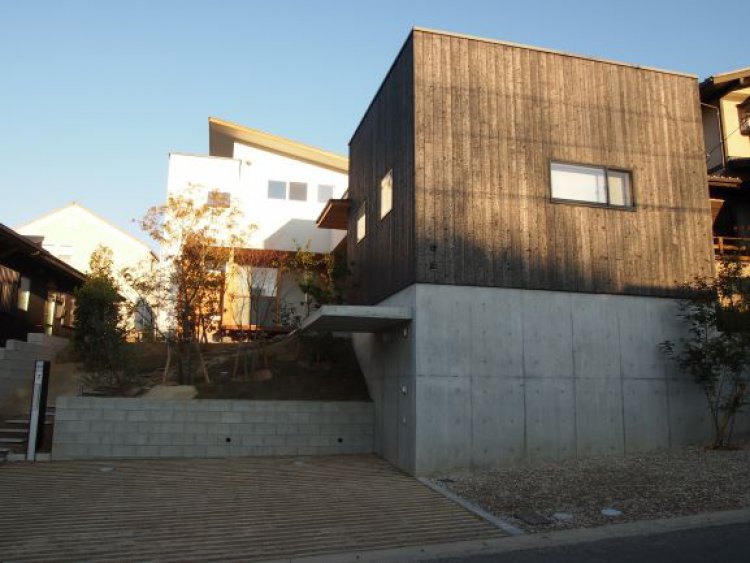 L字型プランを採用することにより、建物の一部を道路側に寄せ建物本体の基礎と擁壁を兼用することにしました。また、高低差もL字型プランによって生まれた、道路から玄関までの距離を長くする事により解消しました。