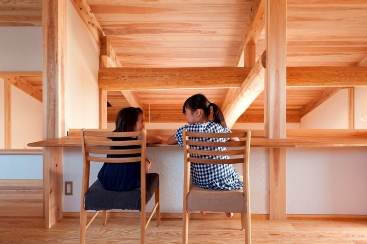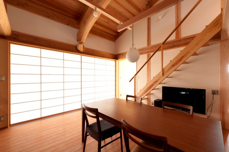 室内は丸太の梁を使用し、加工は全て手刻みによる構造体となっています。