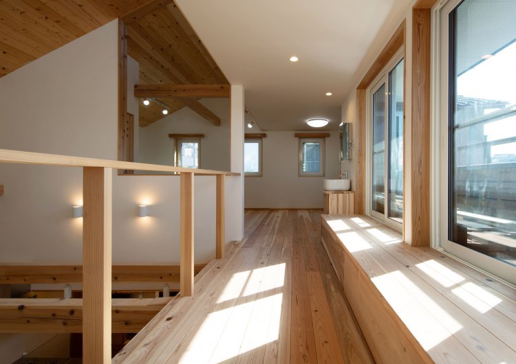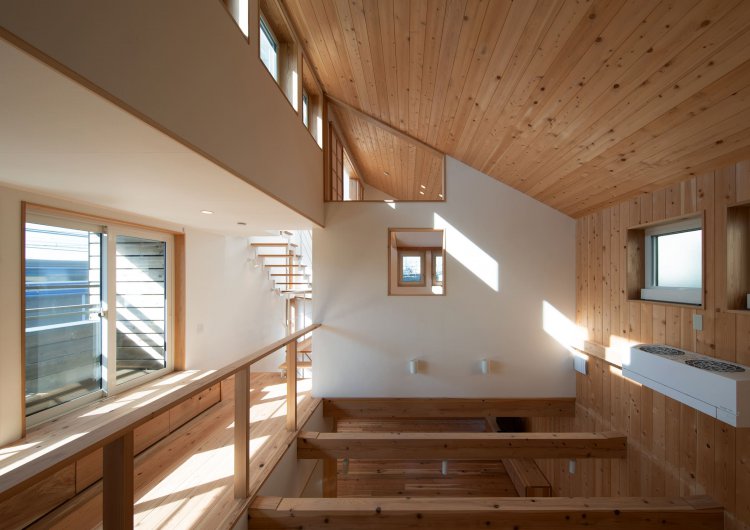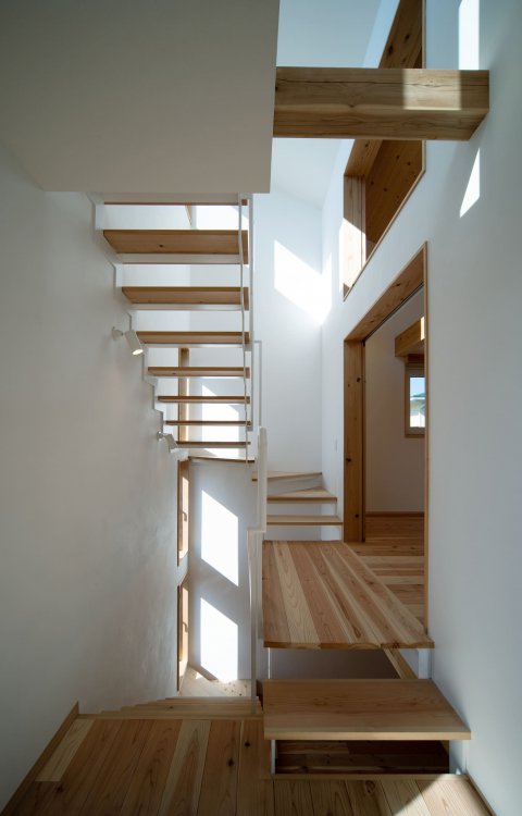 ・南西側の階段は3回レベルから自然光を入れ、下階に明るさと風を通します。