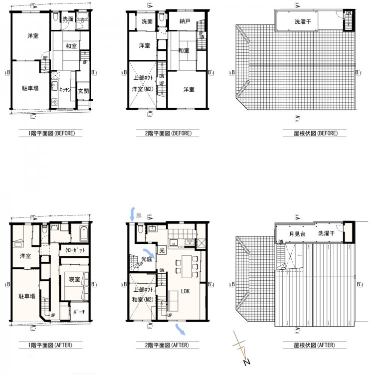 光を求め塔屋ができ、洗濯干し場が屋根上に出来る。非常に良く乾くはずだ。その洗濯干しは残しつつ、家の中を明るく、人の集まる家にしたいという相談だった。
