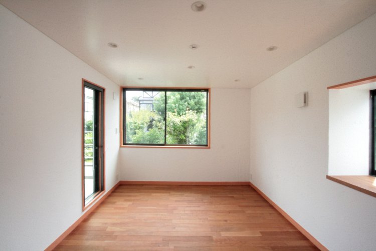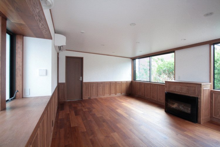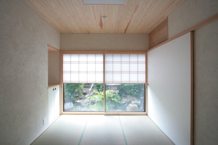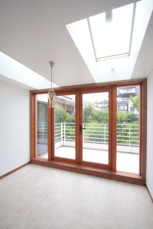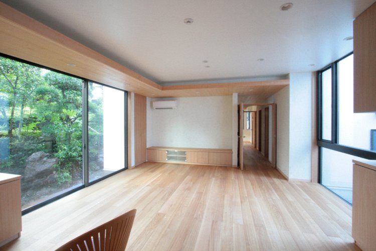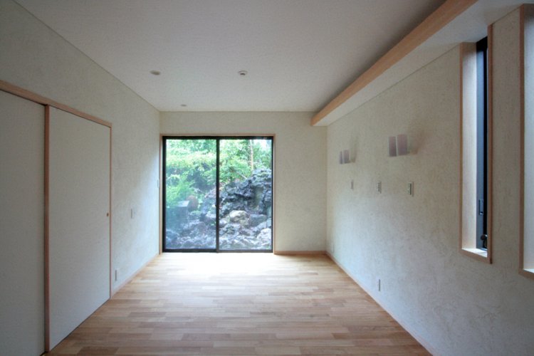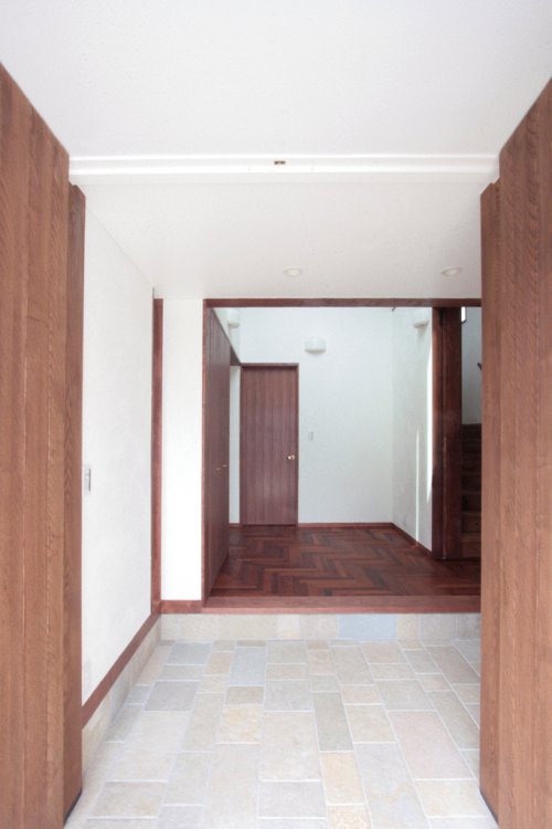 床や造作材は無垢板、その他内装材はタイル、石、漆喰、再生紙、自然塗料といった自然素材を多く採用している家です。