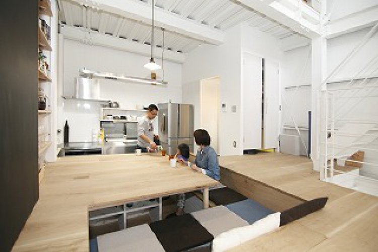 暮らしの要素である「居・食・育」を多様に楽しめる場(用途を限定しない場)を立体的に振り分けることで、クライアントの思い描くライフスタイルを実現できる家となりました。