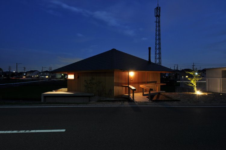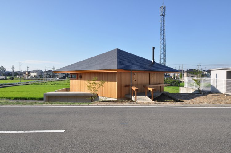 この建物は方形で、敷地に対して45°傾いています。これは、正面から見た美しさ、アプローチの角度、パブリックとプライベートの使い分け、角の開いた解放感等、様々な考えによるものです。