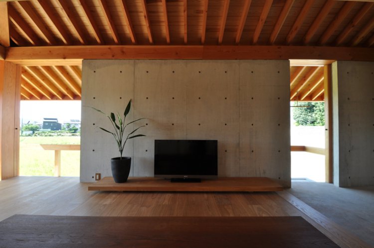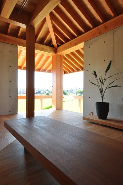 建物の構造は1階RC造、2階壁RC造、屋根・柱木造という少し特殊な混構造をしています。地震力は重いRC壁で受け、木造の軽い屋根荷重は木で受ける事が一番合理的だと思えたからです。