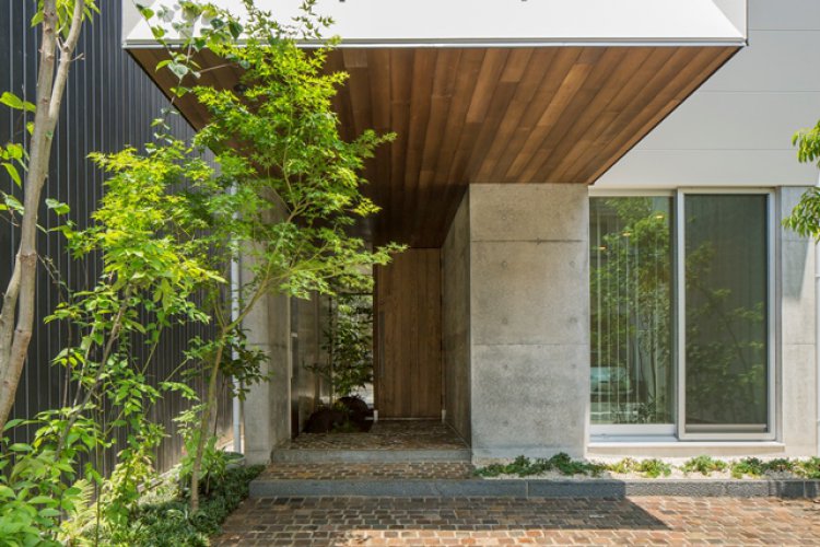 東側は4階建ての事務所兼住宅で、西側は長屋の一部ということもあり、中庭以外の東西開口部は最低限とし、南面は大きな開口部を配置する。