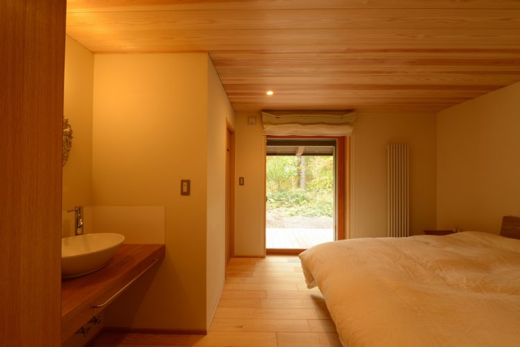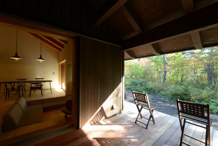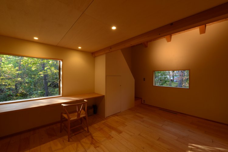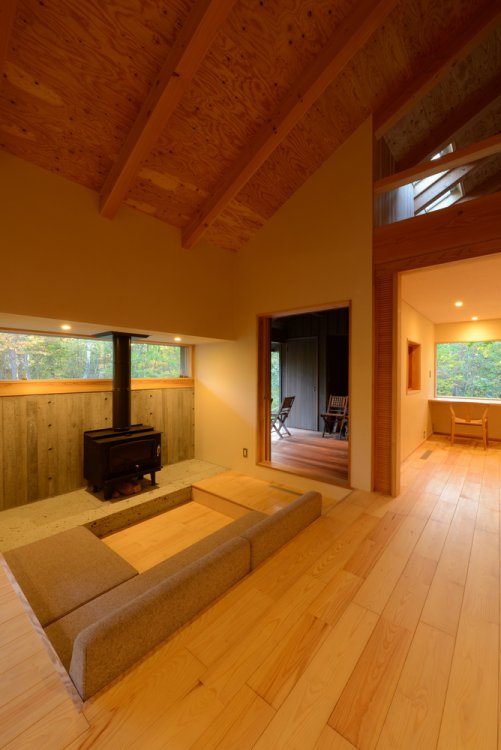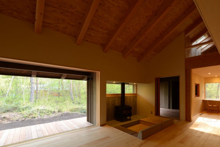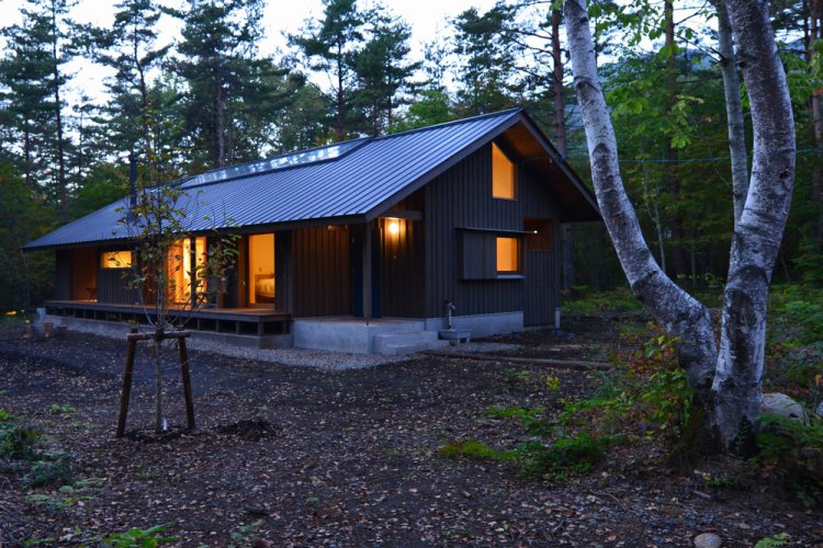 長野市の飯綱高原に建つ山荘。敷地は長野市街地から車で30分の飯綱高原の森の中の別荘地。別荘地としてだけではなく、長野市街からも近い事もあり、定住者も多い場所である。戸隠高原も隣接し、四季を通じて豊かな自然を楽しむ事が出来る。