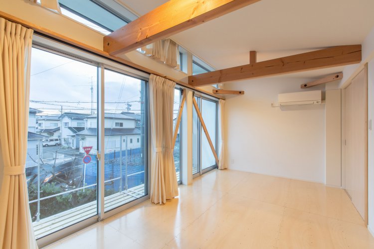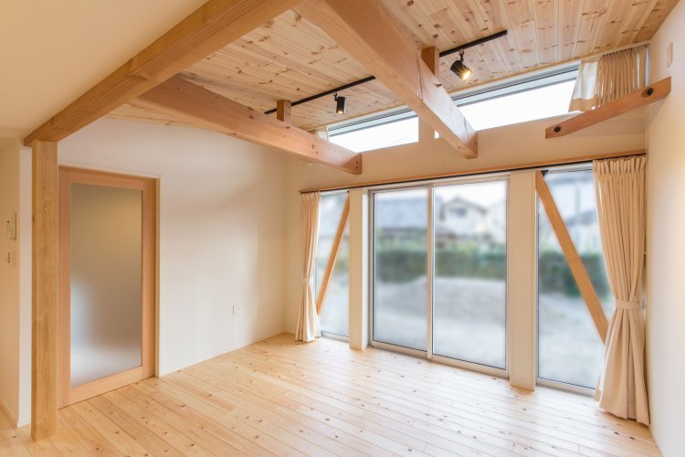 一般的に「開口部の大きい建物は耐震性に劣る」場合が多いですが、この住宅は「サッシの内側に筋違を入れて耐震性能を確保」してあります。その結果として「構造計算上は耐震等級3」という結果でした。