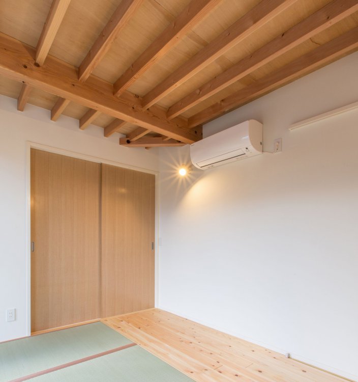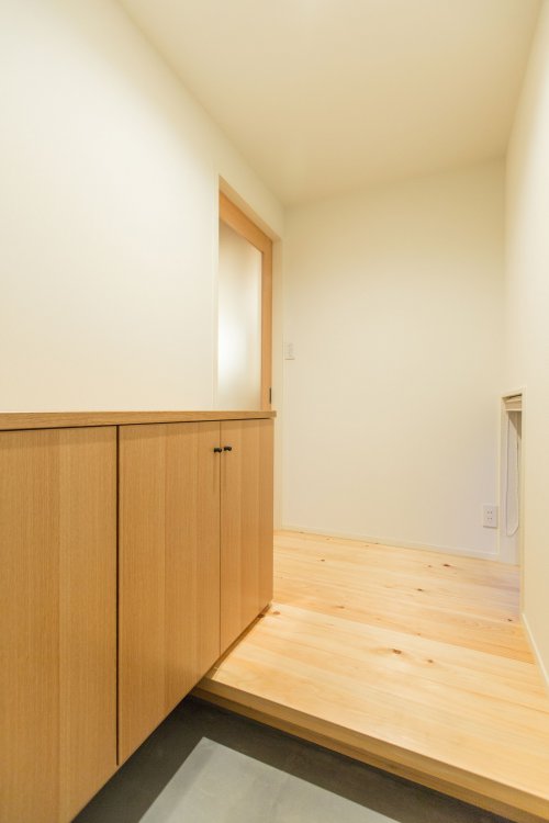 「解放感のあるコンパクトな住宅」というコンセプトのもとに5.46m×5.46mのBOXを3つ重ねてコンパクトさを追求しました。解放感にあふれているため、延べ床面積27.5坪ながら狭さを感じさせません。 無駄を極力省いて1800万円(税・エアコン・カーテン・地盤改良・設計料・抵当権設定・登記費用・諸費用等別途)で、満足のいく仕上げが出来ました。