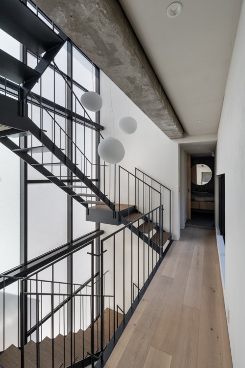階段周りの壁をできるだけ取り除き、南側にリビング・北側にDKを計画し階段室で空間をつなぎ、家全体に光を入れる・視線が抜ける効果により、分断されていたスペースがつながるように計画した。