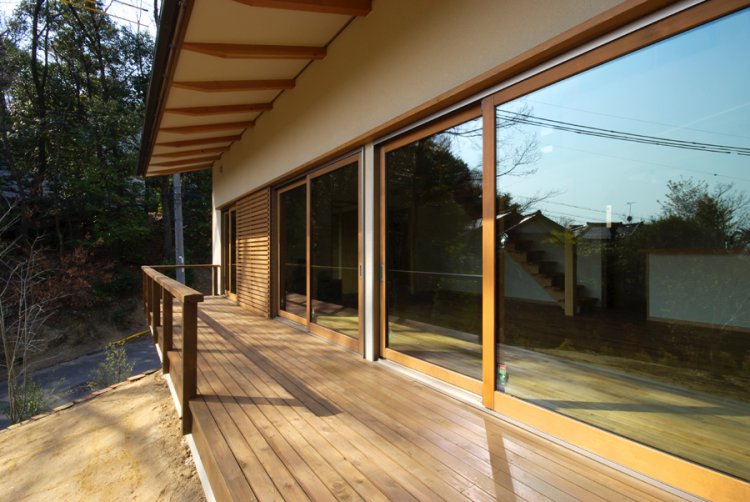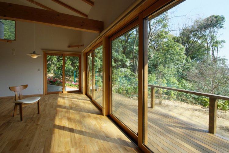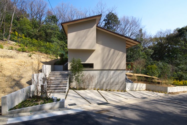 敷地は八事神社に隣接し、南だれの緑豊かな環境にあります。室内からの眺めや周辺環境に配慮しつつ、庭づくりを楽しみながら暮らす家になっています。