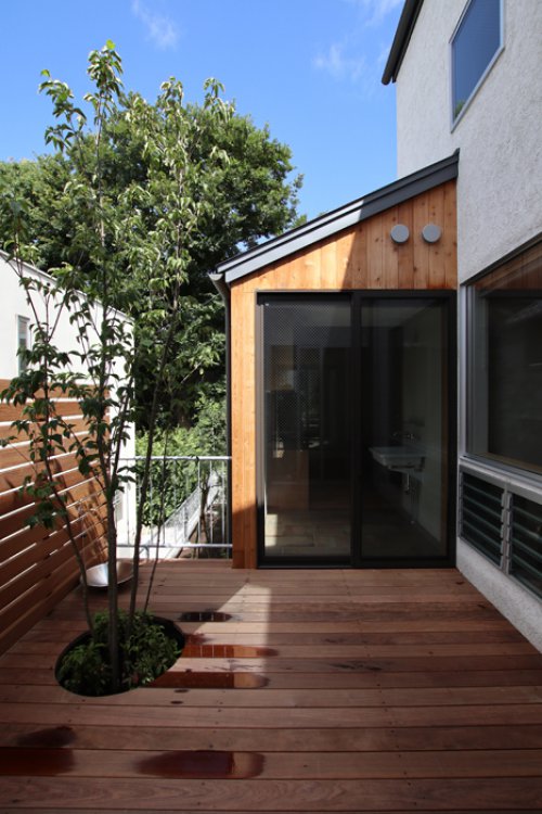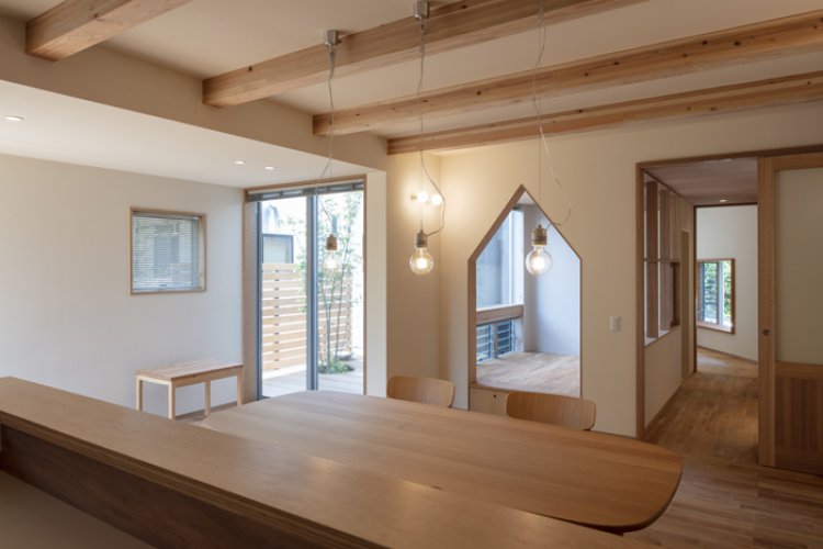 そこで、効果的な位置に複数の窪みを設けて隣地との距離を確保し、窓の向きをコントロールしました。
