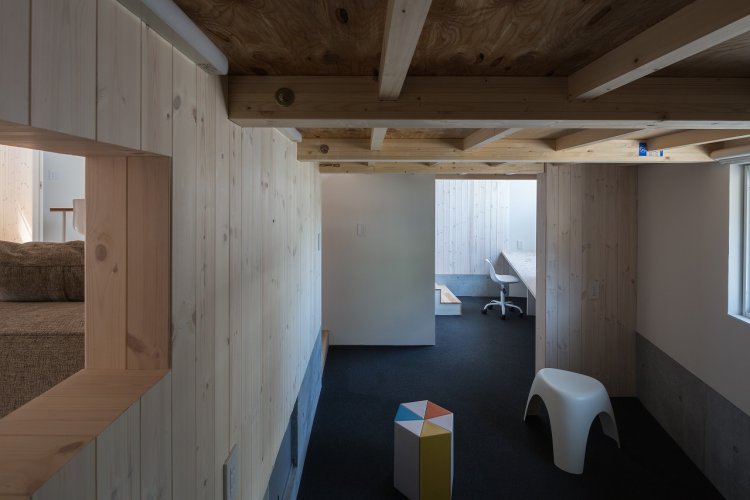 中央の十字型のワンルーム空間が空間を緩やかにつなぐ住宅です。